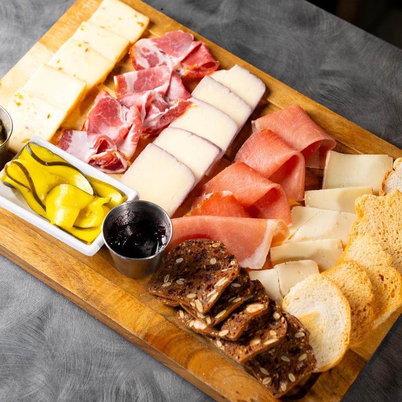 Selection of meats & cheeses, house made pickles, whole grain mustard, accoutrements, crostini's